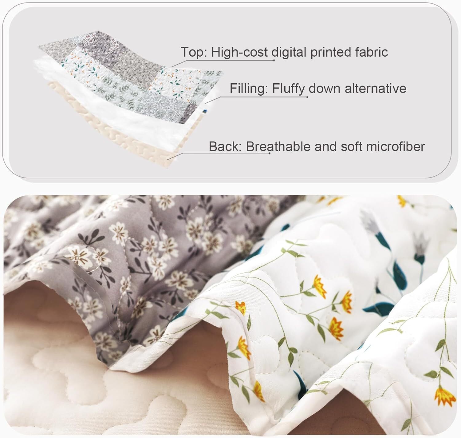 Classic Patchwork Patter and Exquisite Stitches.Digital printed pattern keeps bright color and pattern from fading. Sturdy for machinewash, no shedding and clumping after wash.High Quality: With exquisite stitching technology and well-made microfiber material, Whale Flotilla quilt set will give you the most comfortable skin touch, excellent softness and comfort without any pilling, fading or shrinkage.Color and size: The size of Queen Size Quilt is (96"x 92") with 2 pillowcases(20"x 26"), and King Size Quilt is (96"x 104") with 2 pillowcases(20"x 36"). It also comes in an array of colors, different colors have different styles and patterns to complement any style of home.Exquisite design: This quilt set is reversible with gorgeous patterns and vibrant color. Classic design with elegant pattern is printed on the front side, and the reverse side features bright solid color. The advanced digital printing technology makes the pattern much more beautiful and bright, a perfect ornament to your home decoration.Versatile Bedspread: Combined with practicality and beauty, our lightweight quilt set is your wonderful pick for indoor and outdoor use. It is a stylish ornament for your home decoration, a decent present for birthday, housewarming, Thanksgiving and Christmas party, or a cozy car accessory for long trip.Easy to Care: Machine wash in cold water on gentle cycle, only non-chlorine bleach when needed, tumble dry on low heat. No shrinkage, No pilling, No colour fading and No unraveling after washing.