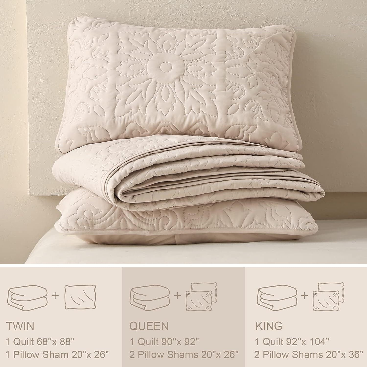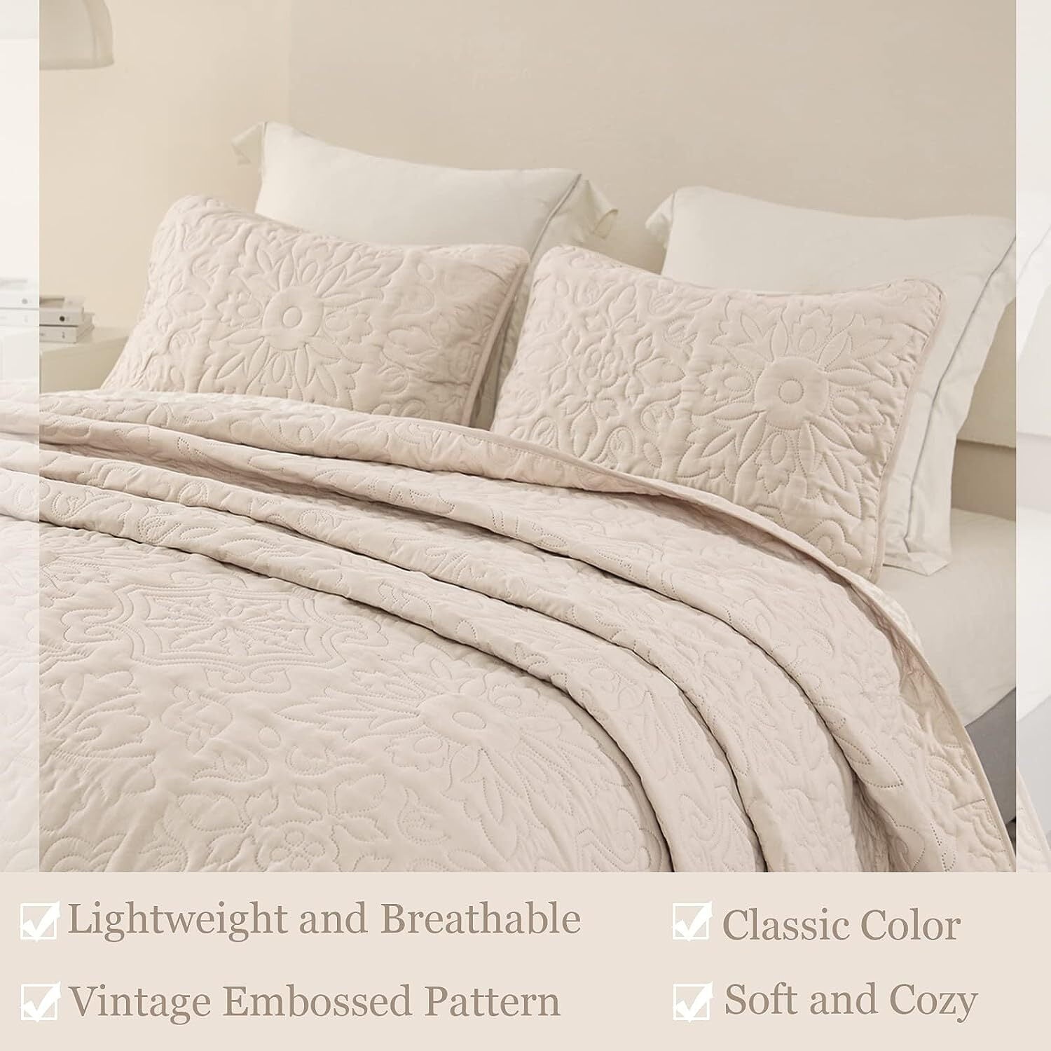 Whale Flotilla 3-Piece California King Size Quilt Set, Soft Ultrasonic Embossed Bedding Set, Lightweight Bedspread Coverlet with Boho Vintage Pattern, Reversible Bed Cover for All Seasons, Brich Beige