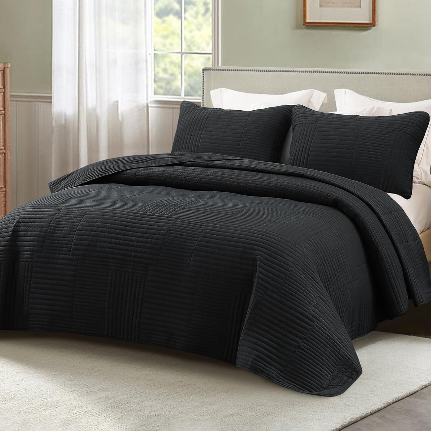Whale Flotilla California King Quilt Set, Soft Oversized Quilts Bedspread Coverlet Striped Pattern, Lightweight Reversible Bedding Sets for All Seasons with Pillow Shams, 104x112 Inches, Black