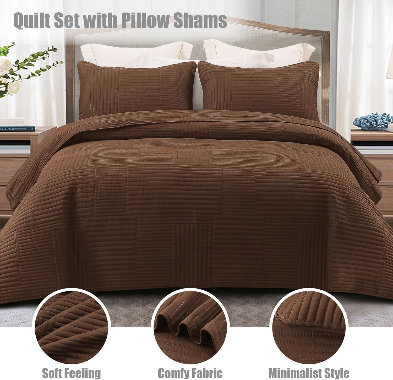 Whale Flotilla California King Quilt Set, Soft Oversized Quilts Bedspread Coverlet Striped Pattern, Lightweight Reversible Bedding Sets for All Seasons with Pillow Shams, 104x112 Inches, Brown