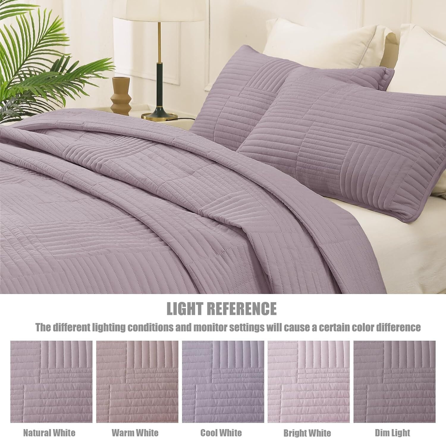The soft and lightweight quilt set is made of breathable microfiber polyester, suitable for all seasons. The microfiber coverlet is washable and dry-friendly. It holds up well in the wash, no fading, no pilling, no shedding, no deformation.It is a ultrasonic quilt bedding set that can be used as bed cover, coverlet and bedspread in bedroom, living room, guestroom.‐Size/ California King size quilt set includes 1 bedspread (104x112 inches) and 2 pillowcases (20x36 inches). Measure your bed/mattress and choose a suitable size to make it drape nicely to the floor.‐High-Quality Fabric/Quilt sets are filled with high quality microfibers. Premium microfiber bed covers are soft and comfortable, just like sleeping on a cloud. This extra soft quilt features a lightweight construction which is perfect for layering. Not only that, ultrasonic stitching will not unravel and allows for many years of continued use.‐Multi-occasion use/Used as quilt, bedspread, comforter set, blanket, bed cover etc. Perfect coverlet quilt for spring and autumn, or the hot summer and cold winter. Feeling a little cool in hot weather, and also can be used in winter as a blanket. Order 1 set and be used in all seasons. Enjoyed in the bedroom, guest room, kids room. Great gift idea for men and women, boys and girls, kids and teens at all ages!‐Pretty Patterns/Quilted with plaid geometric patterns, this beautiful solid color bedspread stands out from plain bedspreds, giving your bedroom and living room an elegant vibe.‐Easy to Care/Premium quality fabric will not crumble and requires little care when washing, which saves your much time. Machine washable in cold water, tumble dry and do not bleach.