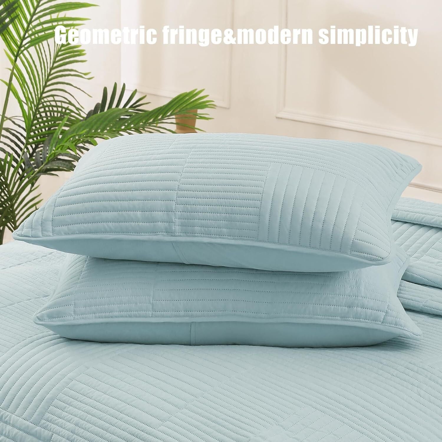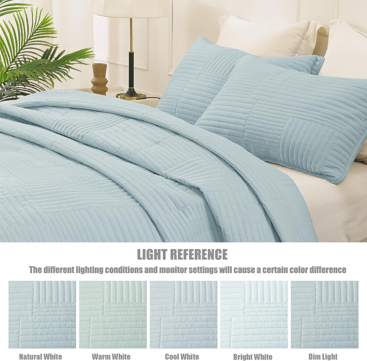 The soft and lightweight quilt set is made of breathable microfiber polyester, suitable for all seasons. The microfiber coverlet is durable, washable and dry-friendly. It holds up well in the wash, no fading, no pilling, no shedding, no deformation.It is a ultrasonic quilt bedding set that can be used as bed cover, coverlet and bedspread in bedroom, living room, guestroom.??Size?? Queen size quilt set includes 1 bedspread (96x90 inches) and 2 pillowcases (20x26 inches). Measure your bed/mattress and choose a suitable size to make it drape nicely to the floor.??High-Quality Fabric??Quilt sets are filled with high quality microfibers. Premium microfiber bed covers are soft and comfortable, just like sleeping on a cloud. This extra soft and durable quilt features a lightweight construction which is perfect for layering. Not only that, ultrasonic stitching will not unravel and allows for many years of continued use.??Multi-occasion use??Used as quilt, bedspread, comforter set, blanket, bed cover etc. Perfect coverlet quilt for spring and autumn, or the hot summer and cold winter. Feeling a little cool in hot weather, and also can be used in winter as a blanket. Order 1 set and be used in all seasons. Enjoyed in the bedroom, guest room, kids room. Great gift idea for men and women, boys and girls, kids and teens at all ages!??Pretty Patterns??Quilted with plaid geometric patterns, this beautiful solid color bedspread stands out from plain ones, giving your bedroom and living room an elegant vibe.??Easy to Care??Premium quality fabric will not crumble and requires little care when washing, which saves your much time. Machine washable in cold water, tumble dry and do not bleach.