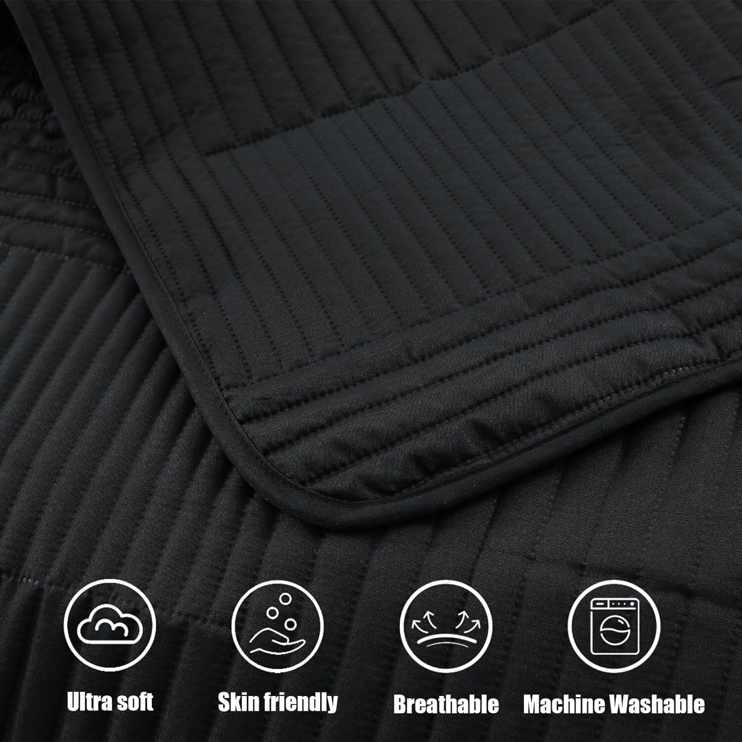 Whale Flotilla Queen Quilt Set, Soft and Lightweight Bedspreads Coverlet with Striped Pattern, Bedding Sets with 2 Pillow Shams, Reversible Bed Cover for All Seasons, 96x90 Inches, Black Grid