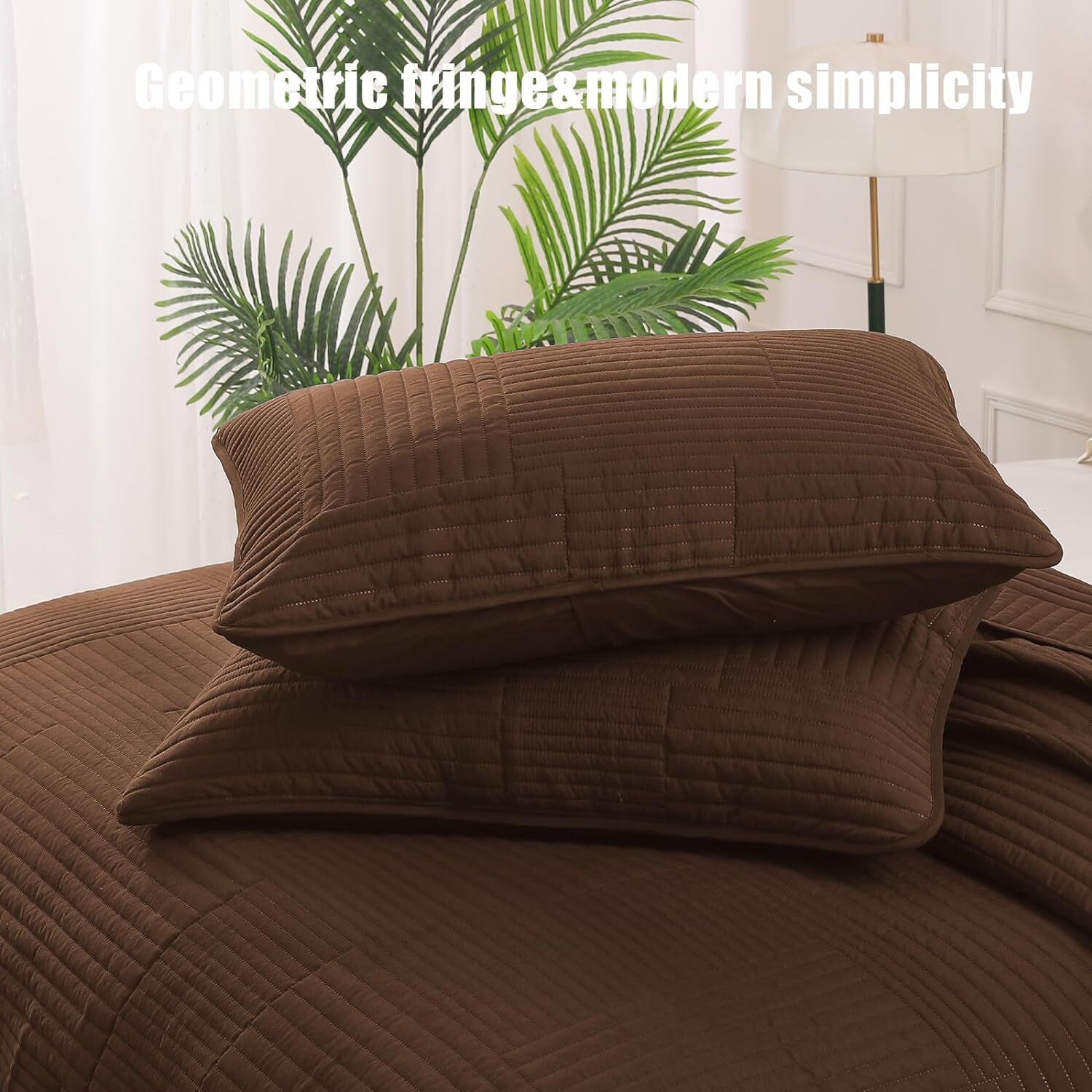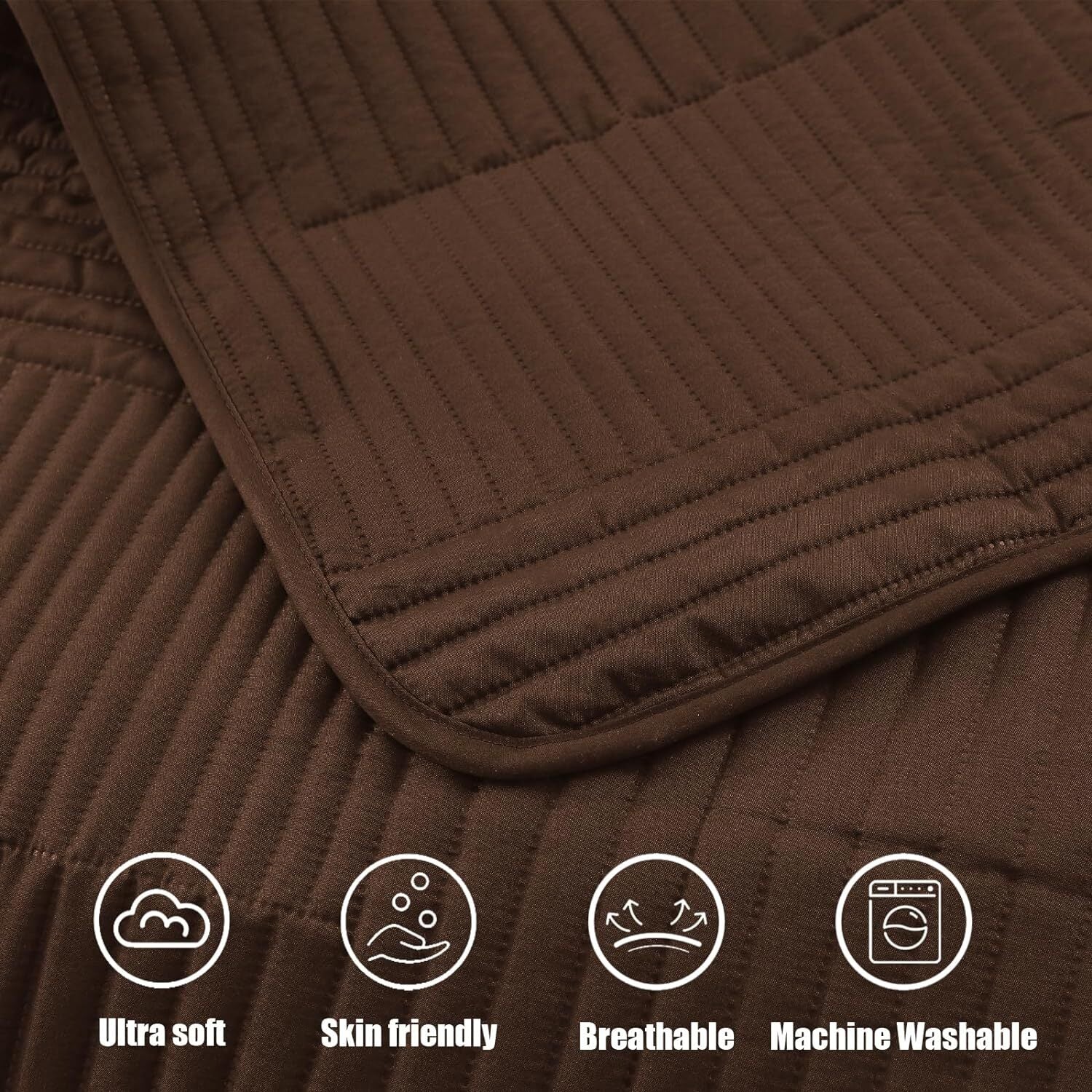 Whale Flotilla Queen Quilt Set, Soft Lightweight Quilts Bedspreads Coverlet with Striped Pattern, Bedding Sets with 2 Pillow Shams, Reversible Bed Cover for All Seasons, 96x90 Inches, Brown