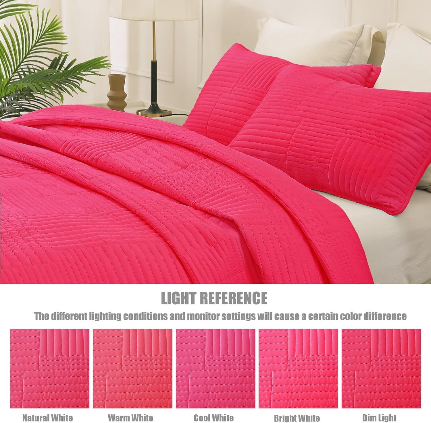 Whale Flotilla Queen Quilt Set, Soft Lightweight Quilts Bedspreads Coverlet with Striped Pattern, Bedding Sets with 2 Pillow Shams, Reversible Bed Cover for All Seasons, 96x90 Inches, Hot Pink