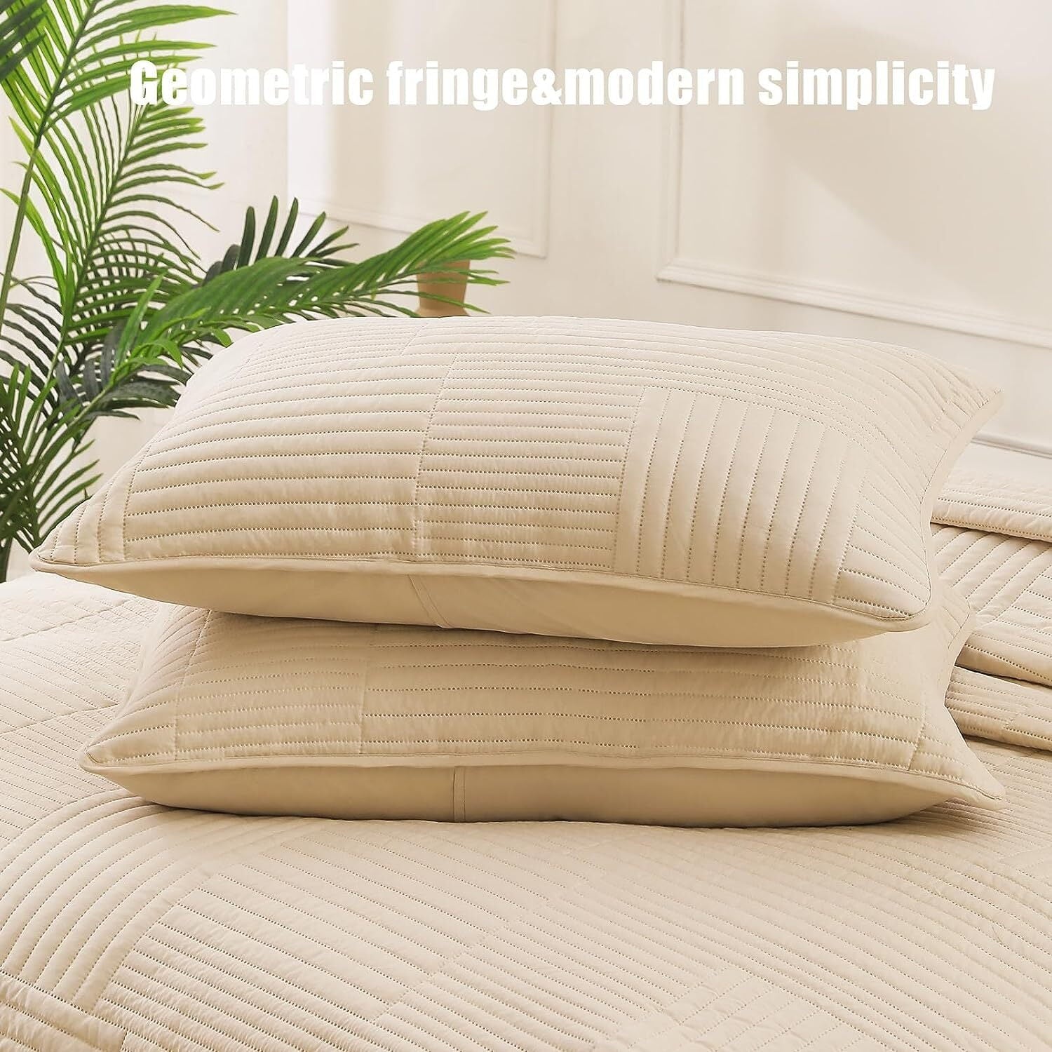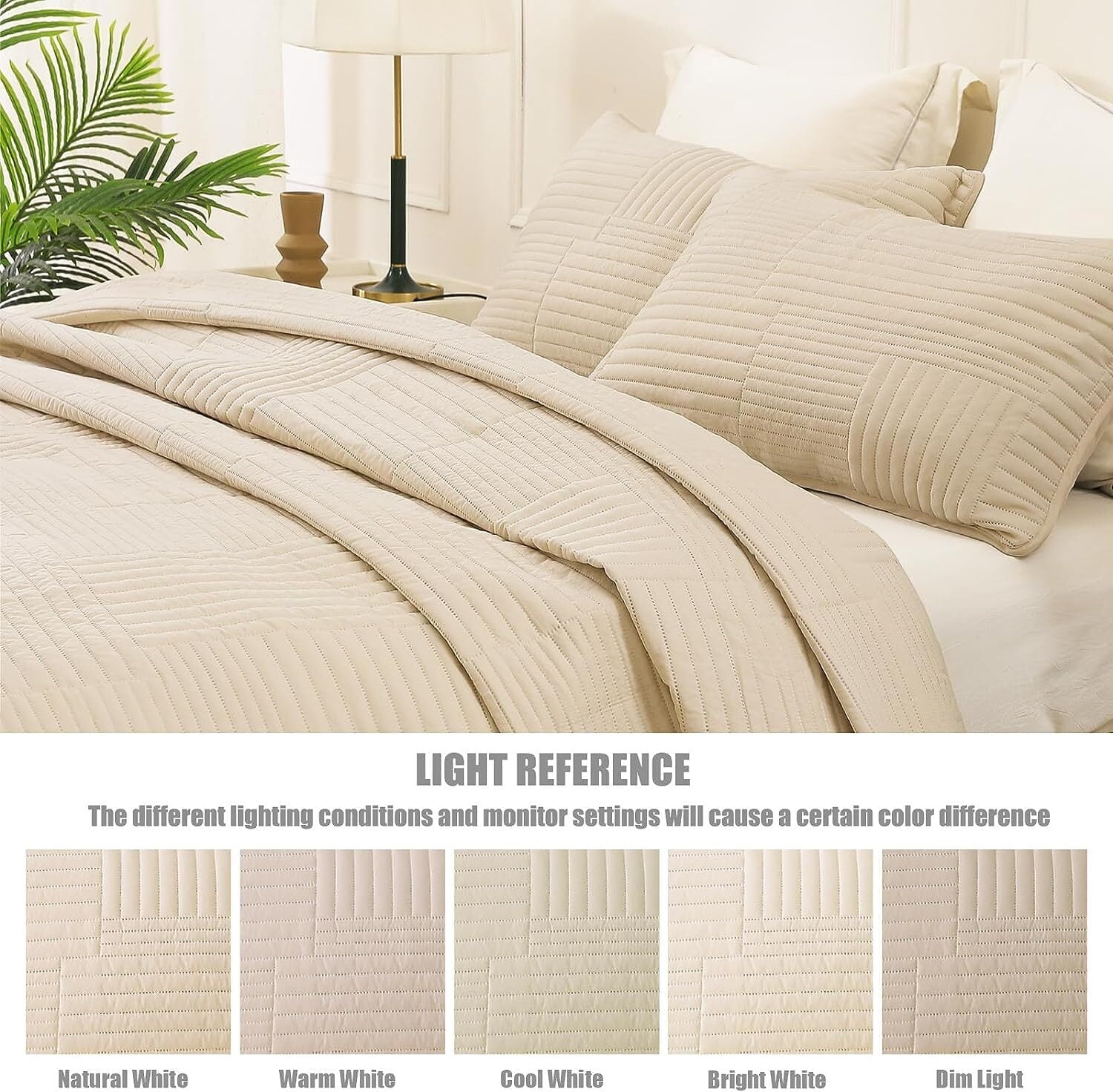 The soft and lightweight quilt set is made of breathable microfiber polyester, suitable for all seasons. The microfiber coverlet is durable, washable and dry-friendly. It holds up well in the wash, no fading, no pilling, no shedding, no deformation.It is a ultrasonic quilt bedding set that can be used as bed cover, coverlet and bedspread in bedroom, living room, guestroom.??Size?? Queen size quilt set includes 1 bedspread (96x90 inches) and 2 pillowcases (20x26 inches); King size quilt set includes 1 bedspread (104x96 inches) and 2 pillowcases (20x36 inches). Twin size quilt includes 1 bedspread (88x68 inches) and 1 pillowcase (20x36 inches). Measure your bed/mattress and choose a suitable size to make it drape nicely to the floor.??High-Quality Fabric??Quilt sets are filled with high quality microfibers. Premium microfiber bed covers are soft and comfortable, just like sleeping on a cloud. This extra soft and durable quilt features a lightweight construction which is perfect for layering. Not only that, ultrasonic stitching will not unravel and allows for many years of continued use.??Multi-occasion use??Used as quilt, bedspread, comforter set, blanket, bed cover etc. Perfect coverlet quilt for spring and autumn, or the hot summer and cold winter. Feeling a little cool in hot weather, and also can be used in winter as a blanket. Order 1 set and be used in all seasons. Enjoyed in the bedroom, guest room, kids room. Great gift idea for men and women, boys and girls, kids and teens at all ages!??Pretty Patterns??Quilted with plaid geometric patterns, this beautiful solid color bedspread stands out from plain ones, giving your bedroom and living room an elegant vibe.??Easy to Care??Premium quality fabric will not crumble and requires little care when washing, which saves your much time. Machine washable in cold water, tumble dry and do not bleach.