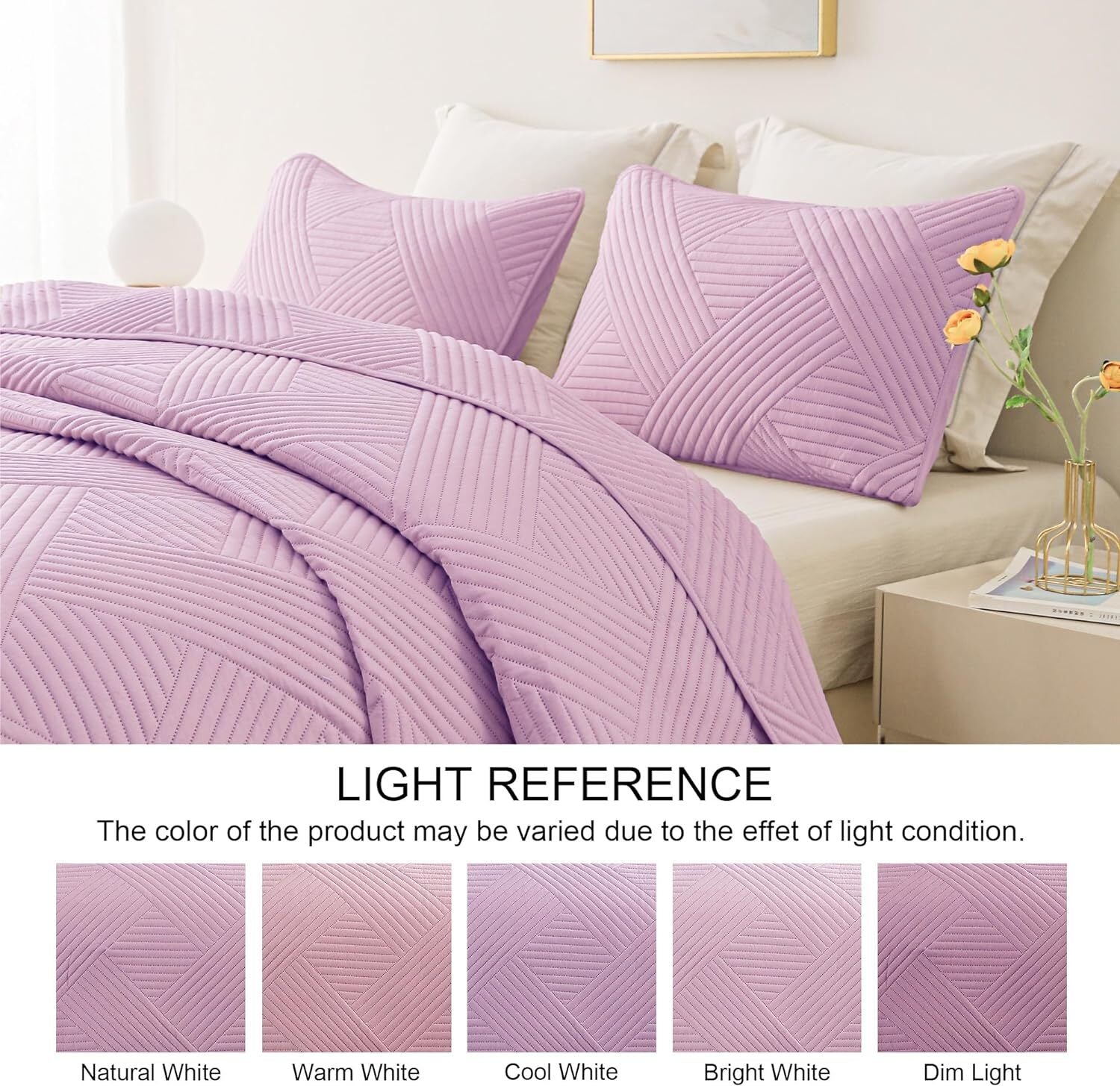 ??Size?? California King size quilt set includes 1 bedspread (104x112 inches) and 2 pillowcases (20x36 inches). Measure your bed/mattress and choose a suitable size to make it drape nicely to the floor.??High-Quality Fabric??Quilt sets are filled with high quality microfibers. Premium microfiber bed covers are soft and comfortable, just like sleeping on a cloud. This extra soft and durable quilt features a lightweight construction which is perfect for layering. Not only that, ultrasonic stitching will not unravel and allows for many years of continued use.??Multi-occasion use??Used as quilt, bedspread, comforter set, blanket, bed cover etc. Perfect coverlet quilt for spring and autumn, or the hot summer and cold winter. Feeling a little cool in hot weather, and also can be used in winter as a blanket. Order 1 set and be used in all seasons. Enjoyed in the bedroom, guest room, kids room. Great gift idea for men and women, boys and girls, kids and teens at all ages!??Pretty Patterns??Quilted with plaid geometric patterns, this beautiful solid color bedspread stands out from plain ones, giving your bedroom and living room an elegant vibe.??Easy to Care??Premium quality fabric will not crumble and requires little care when washing, which saves your much time. Machine washable in cold water, tumble dry and do not bleach.
