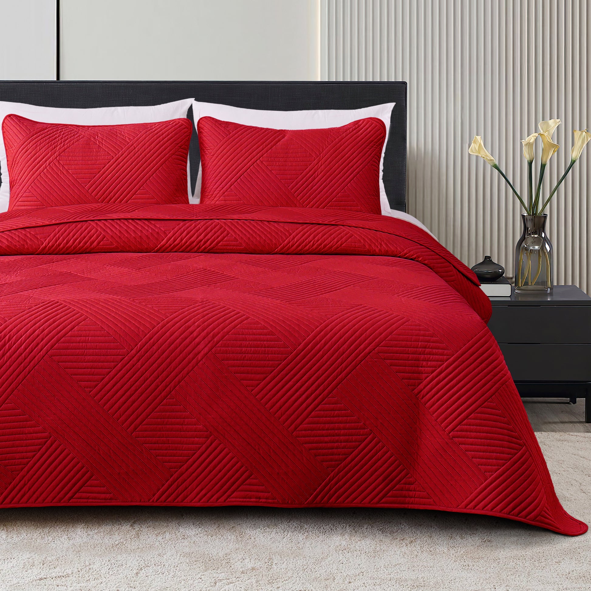 What You Can Get: The quilt set includes one Queen quilt (96?\x90?\) and two pillowcases (20?\x26?\ ).PREMIUM MATERIAL: Our quilt sets are made with advanced ultrasonic technology, featuring Anti-wrinkle, durability and tightness in fabric and stitching. The quilt sets are filled with high quality microfiber, making it softer, more breathable and lightweight. Feeling super comfortable and warm, you can easily fall into a sound sleep.MINIMALISTIC STYLE: Classic minimalist geometric patterns can easily match your home decor. We offer plenty of vibrant colors for you. Just choose the color according to the style of your bedroom, living room and sofa. It would be the best gift for your friends and family.MULTI-PURPOSE: It is suitable for all seasons. Used as a breathable quilt in summer and a perfect layering blanket in winter. Depending on the season, you can use it as a quilt, blanket, coverlet, bedspread or just simply an elegant bedding decoration.Easy Care: Machine washable in cold water, gentle cycle, tumble dry on low heat and do not bleach. No shrinkage, No pilling, No colour fading and No unraveling after washing. Our quilt sets will remain soft after multiple washes.