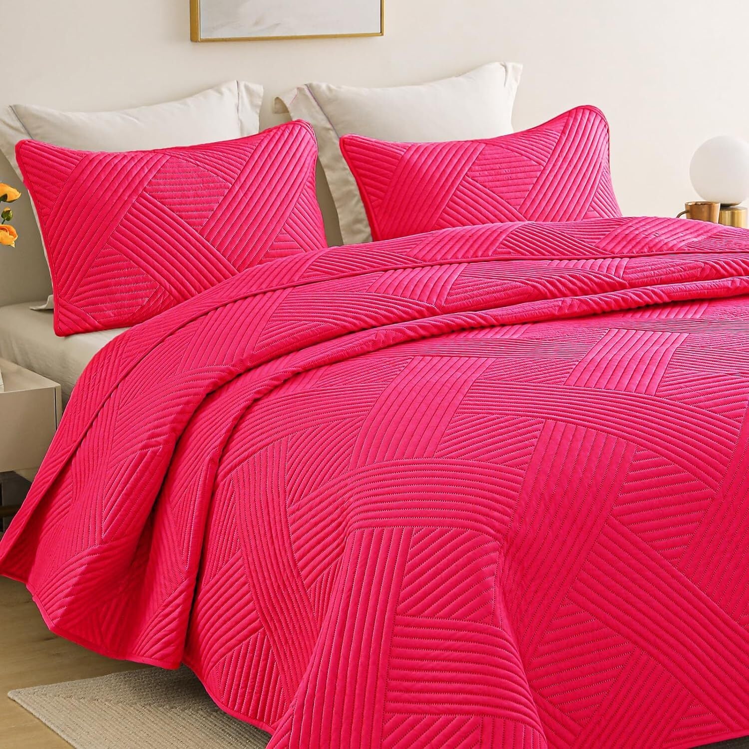 What You Can Get: The quilt set includes one Twin quilt (88?\x68?\) and one pillowcase (20?\x26?\ ).PREMIUM MATERIAL: Our quilt sets are made with advanced ultrasonic technology, featuring Anti-wrinkle, durability and tightness in fabric and stitching. The quilt sets are filled with high quality microfiber, making it softer, more breathable and lightweight. Feeling super comfortable and warm, you can easily fall into a sound sleep.MINIMALISTIC STYLE: Classic minimalist geometric patterns can easily match your home decor. We offer plenty of vibrant colors for you. Just choose the color according to the style of your bedroom, living room and sofa. It would be the best gift for your friends and family.MULTI-PURPOSE: It is suitable for all seasons. Used as a breathable quilt in summer and a perfect layering blanket in winter. Depending on the season, you can use it as a quilt, blanket, coverlet, bedspread or just simply an elegant bedding decoration.Easy Care: Machine washable in cold water, gentle cycle, tumble dry on low heat and do not bleach. No shrinkage, No pilling, No colour fading and No unraveling after washing. Our quilt sets will remain soft after multiple washes.