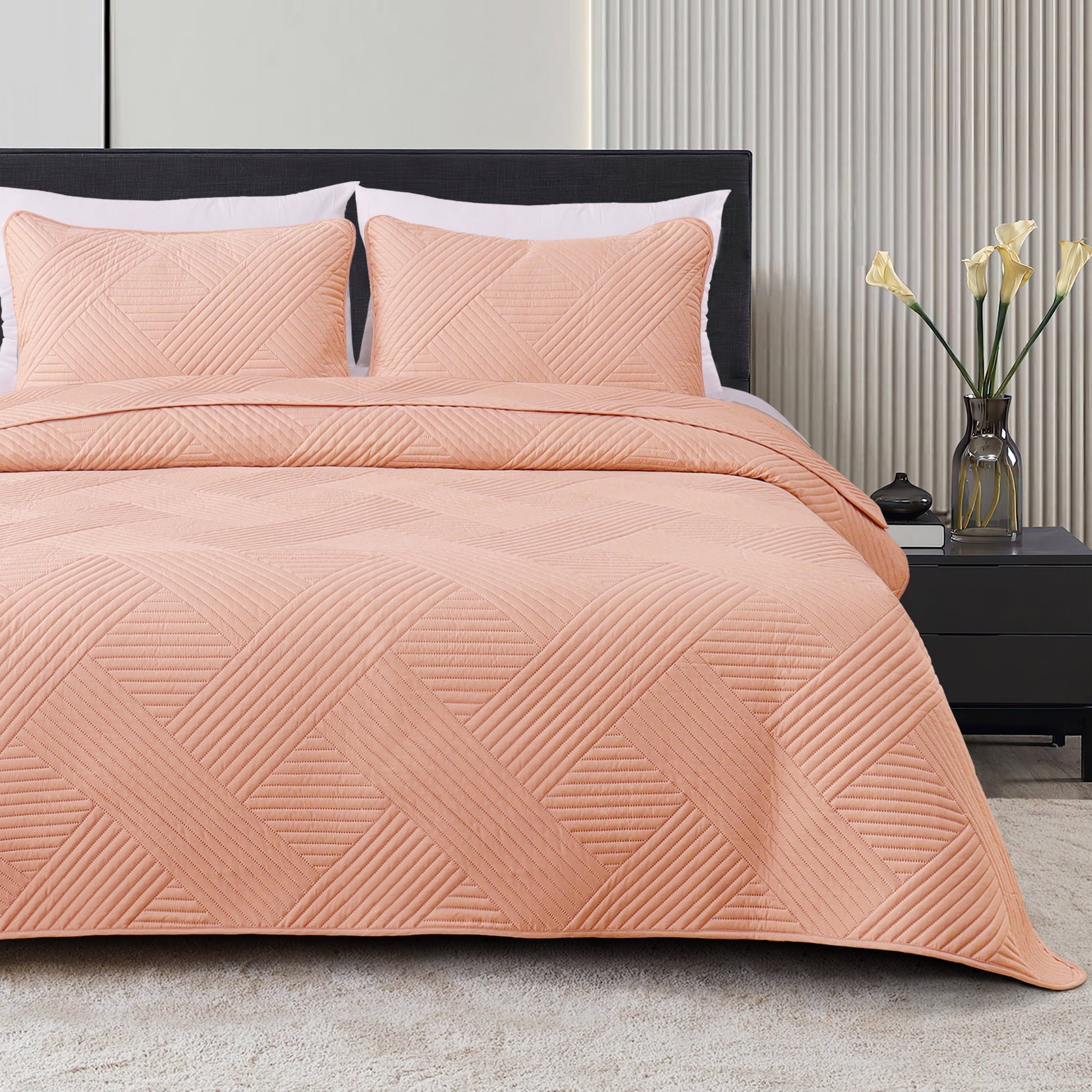 ??Size?? Twin size quilt includes 1 bedspread (88x68 inches) and 1 pillowcase (20x26 inches). Measure your bed/mattress and choose a suitable size to make it drape nicely to the floor.??High-Quality Fabric??Quilt sets are filled with high quality microfibers. Premium microfiber bed covers are soft and comfortable, just like sleeping on a cloud. This extra soft and durable quilt features a lightweight construction which is perfect for layering. Not only that, ultrasonic stitching will not unravel and allows for many years of continued use.??Multi-occasion use??Used as quilt, bedspread, comforter set, blanket, bed cover etc. Perfect coverlet quilt for spring and autumn, or the hot summer and cold winter. Feeling a little cool in hot weather, and also can be used in winter as a blanket. Order 1 set and be used in all seasons. Enjoyed in the bedroom, guest room, kids room. Great gift idea for men and women, boys and girls, kids and teens at all ages!??Pretty Patterns??Quilted with plaid geometric patterns, this beautiful solid color bedspread stands out from plain ones, giving your bedroom and living room an elegant vibe.??Easy to Care??Premium quality fabric will not crumble and requires little care when washing, which saves your much time. Machine washable in cold water, tumble dry and do not bleach.
