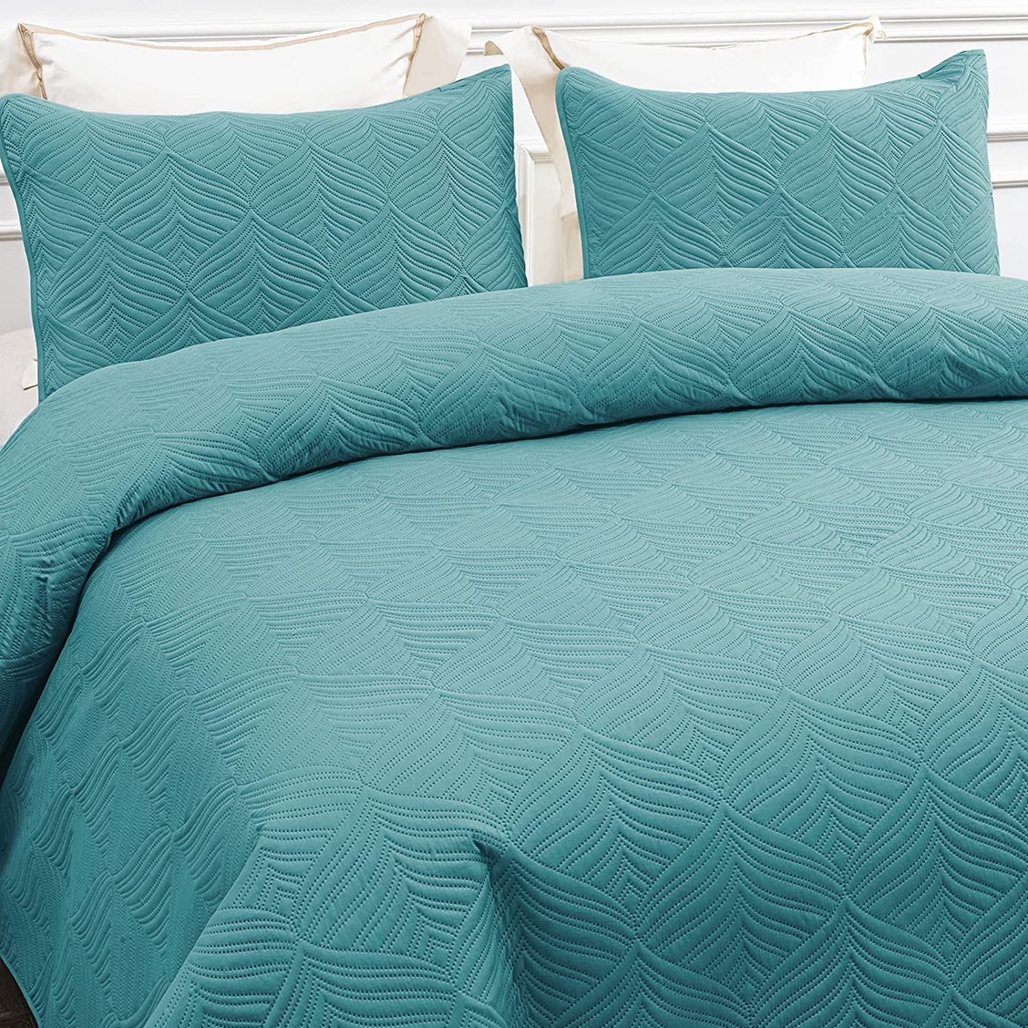 The soft and lightweight quilt set is made of breathable microfiber polyester, suitable for all seasons. The microfiber coverlet is durable, washable and dry-friendly. It holds up well in the wash, no fading, no pilling, no shedding, no deformation. It is a ultrasonic quilt bedding set that can be used as bed cover, coverlet and bedspread in bedroom, living room, guestroom.Vintage Embossed Pattern: Quilted with European style baroque patterns, this beautiful embossed bedspread stands out from plain ones, giving your bedroom and living room an unique and elegant vibe.Sizes and Colors: Four sizes are available 68?\x 88?\quilt is ideal for twin bed, 96?\x 90?\for queen bed, 96?\x104?\for king bed, and 104?\x112?\is ideal for California king bed. It also comes in an array of colors, from neutrals to bright shades, to complement any style of home.Soft Lightweight Coverlet: This ultra comfortable quilt bedding set is soft to the touch and light as a feather. Thanks to its breathable brushed polyester padding and cover, the lightweight coverlet is well suited for year-round use, especially kind to hot sleeper.Versatile Bedspread: Combined with practicality and beauty, our lightweight quilt set is your wonderful pick for indoor and outdoor use. It is a stylish ornament for your home decoration, a decent gift for birthday, housewarming, Thanksgiving and Christmas party, or a cozy car accessory for long trip.Care Instruction: The durable ultrasonic quilt set is machine washed and dried. Machine wash in cold water on gentle cycle, tumble dry low. No blench or iron. Please wash it separately and pat it gently before the first use so as to have a more fluffy and softer bed cover.