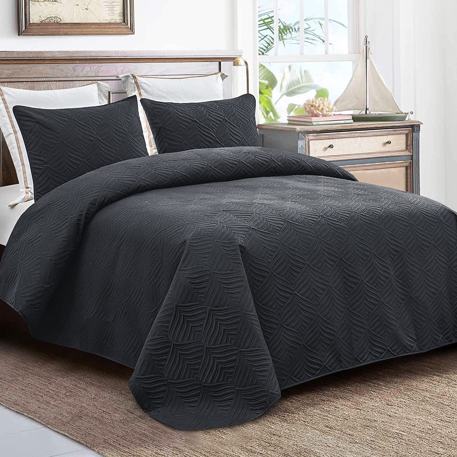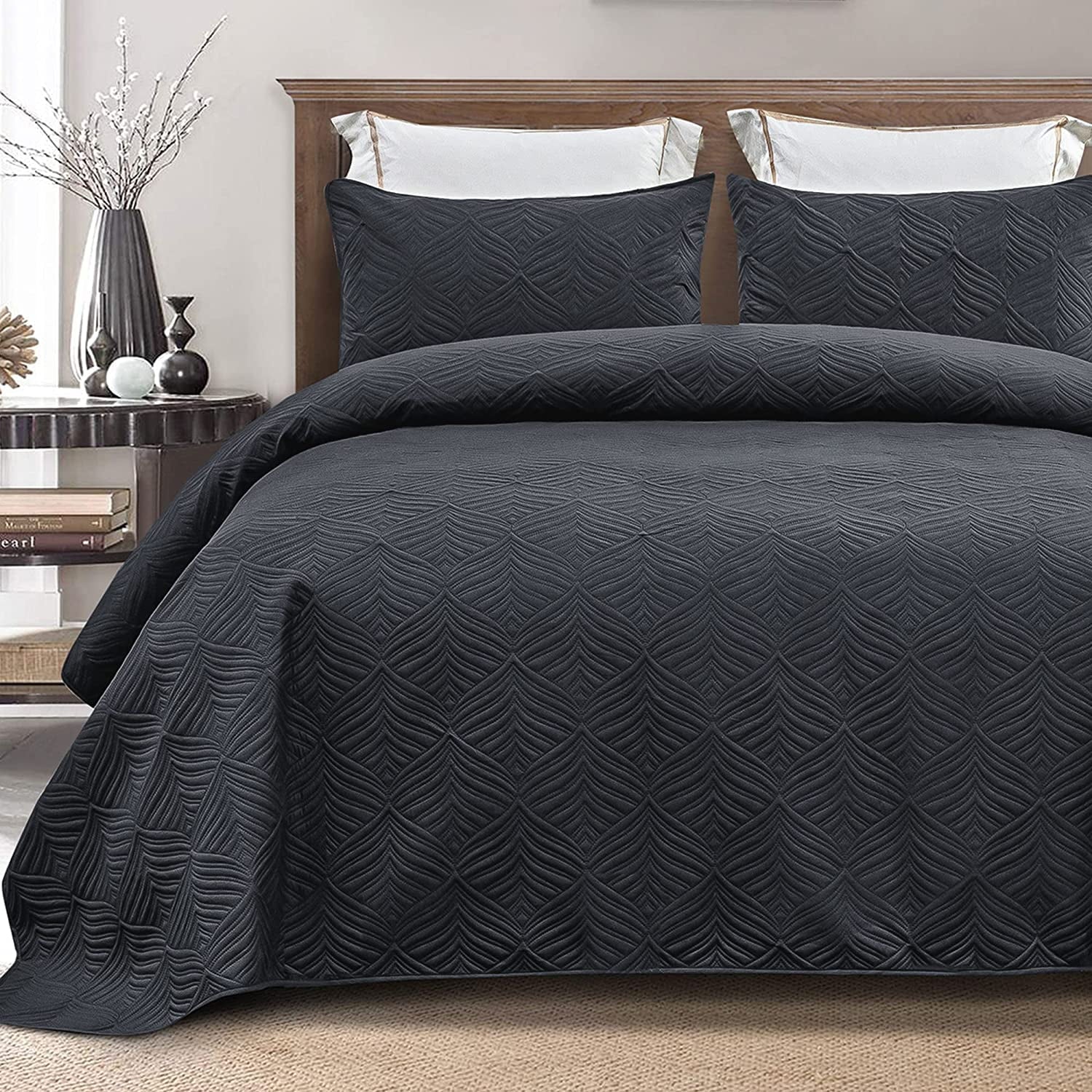 Whale Flotilla 3-Piece California King Size Quilt Set, Soft Ultrasonic Embossed Bedding Set, Lightweight Bedspread Coverlet with Vintage Pattern, Reversible Bed Cover for All Seasons, Dark Grey