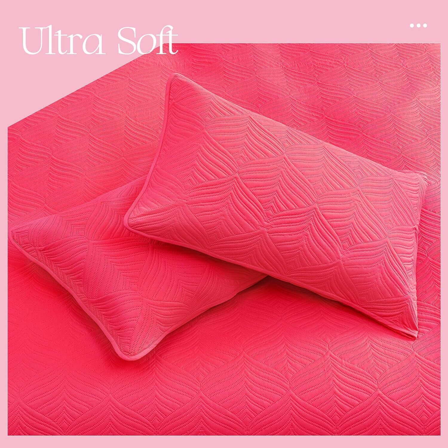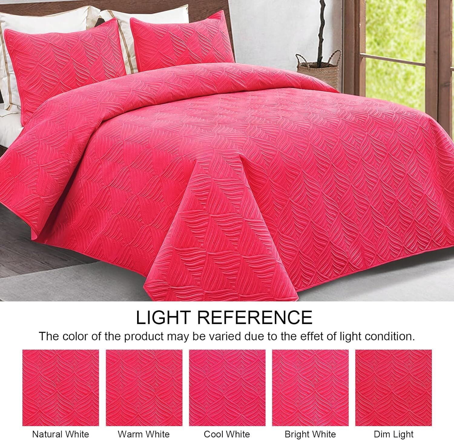 Whale Flotilla 3-Piece California King Size Quilt Set, Soft Ultrasonic Embossed Bedding Set, Lightweight Bedspread Coverlet with Vintage Pattern, Reversible Bed Cover for All Seasons, Vintage Hot Pink