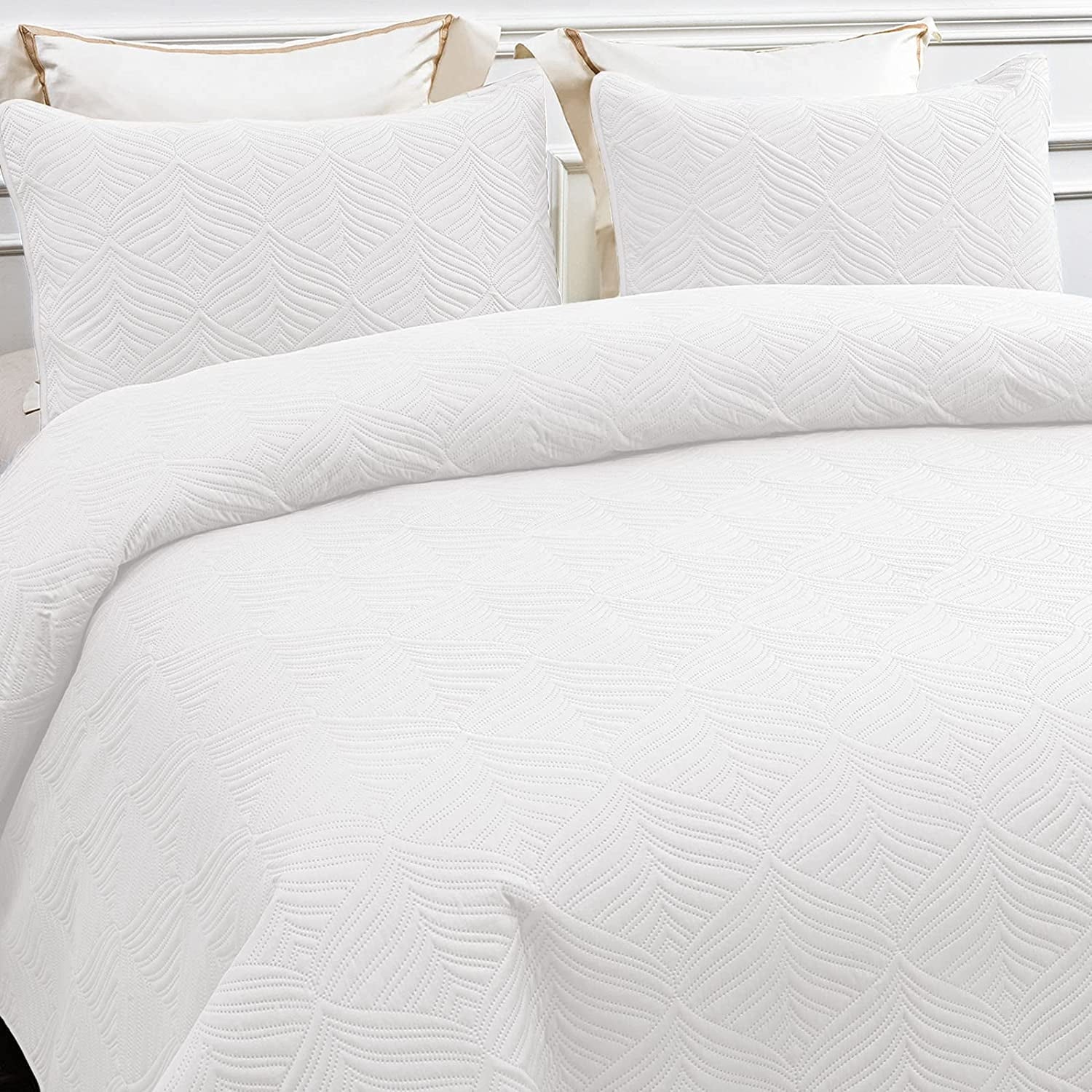 Whale Flotilla Microfiber King Size (96x104 inches) Quilt Set Lightweight Ultrasonic Quilted Bedspreads Coverlets Set with Classic Pattern, White, 3 Piece (1 Quilt, 2 Pillow Shams)