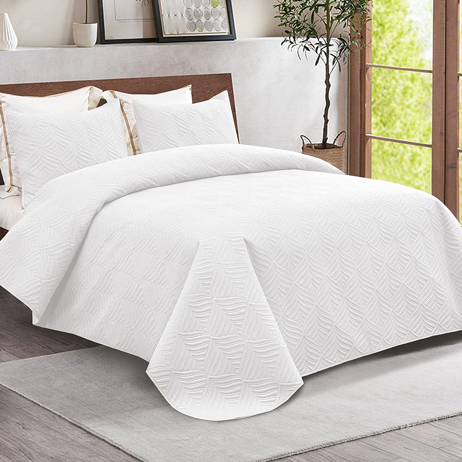 Whale Flotilla Microfiber Queen Size (96x90 inches) Quilt Set Lightweight Ultrasonic Quilted Bedspreads Coverlets Set with Classic Pattern, White, 3 Piece (1 Quilt, 2 Pillow Shams)