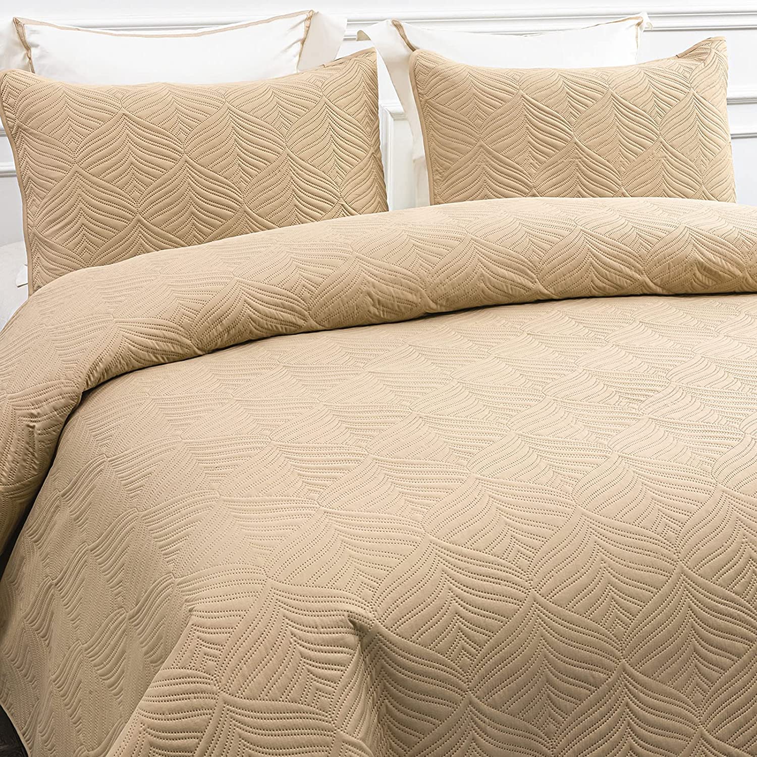Whale Flotilla Microfiber Twin Size (68x88 inches) Quilt Set Lightweight Ultrasonic Quilted Bedspreads Coverlets Set with Classic Pattern, Camel, 2 Piece (1 Quilt, 1 Pillow Sham)