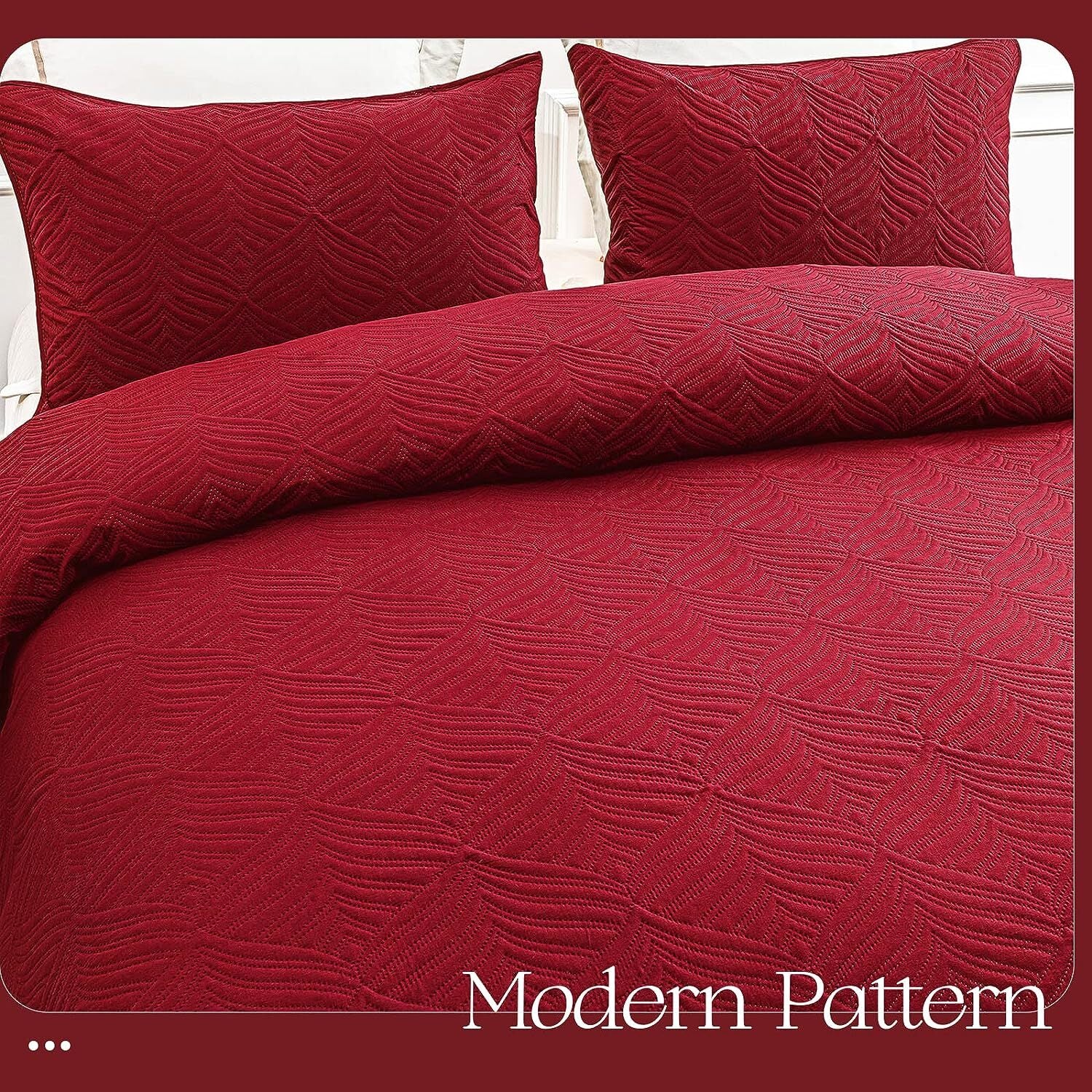 Whale Flotilla Microfiber Twin Size (68x88 inches) Quilt Set Lightweight Ultrasonic Quilted Bedspreads Coverlets Set with Classic Pattern,Red, 2 Piece (1 Quilt, 1 Pillow Sham)