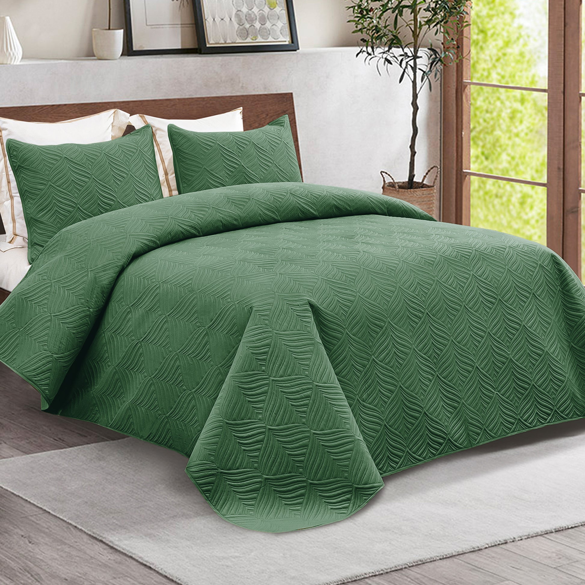 The soft and lightweight quilt set is made of breathable microfiber polyester, suitable for all seasons. The microfiber coverlet is durable, washable and dry-friendly. It holds up well in the wash, no fading, no pilling, no shedding, no deformation. It is a ultrasonic quilt bedding set that can be used as bed cover, coverlet and bedspread in bedroom, living room, guestroom.Vintage Embossed Pattern: Quilted with European style baroque patterns, this beautiful embossed bedspread stands out from plain ones, giving your bedroom and living room an unique and elegant vibe.Sizes and Colors: Four sizes are available 68?\x 88?\quilt is ideal for twin bed, 96?\x 90?\for queen bed, 96?\x104?\for king bed, and 104?\x112?\is ideal for California king bed. It also comes in an array of colors, from neutrals to bright shades, to complement any style of home.Soft Lightweight Coverlet: This ultra comfortable quilt bedding set is soft to the touch and light as a feather. Thanks to its breathable brushed polyester padding and cover, the lightweight coverlet is well suited for year-round use, especially kind to hot sleeper.Versatile Bedspread: Combined with practicality and beauty, our lightweight quilt set is your wonderful pick for indoor and outdoor use. It is a stylish ornament for your home decoration, a decent gift for birthday, housewarming, Thanksgiving and Christmas party, or a cozy car accessory for long trip.Care Instruction: The durable ultrasonic quilt set is machine washed and dried. Machine wash in cold water on gentle cycle, tumble dry low. No blench or iron. Please wash it separately and pat it gently before the first use so as to have a more fluffy and softer bed cover.