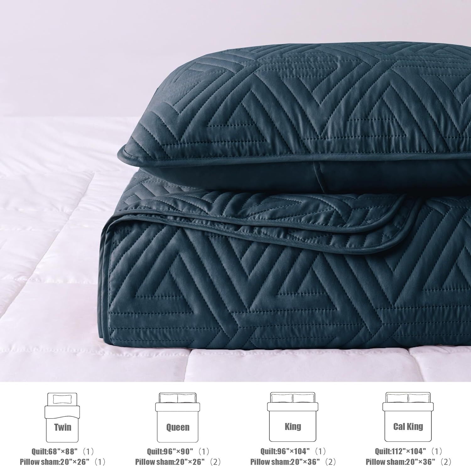 Whale Flotilla 3-Piece Californian King Size Quilt Set/Bedspreads/Coverlets for All Season, Classic Geometric Pattern Bedding Set with 2 Pillow Shams, Soft and Lightweight, Navy