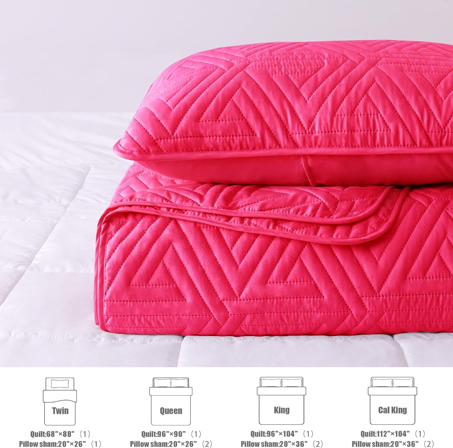 Whale Flotilla 3-Piece Californian King Size Quilt Set/Bedspreads/Coverlets for All Season, Classic Geometric Pattern Bedding Set with 2 Pillow Shams, Soft and Lightweight, Hot Pink