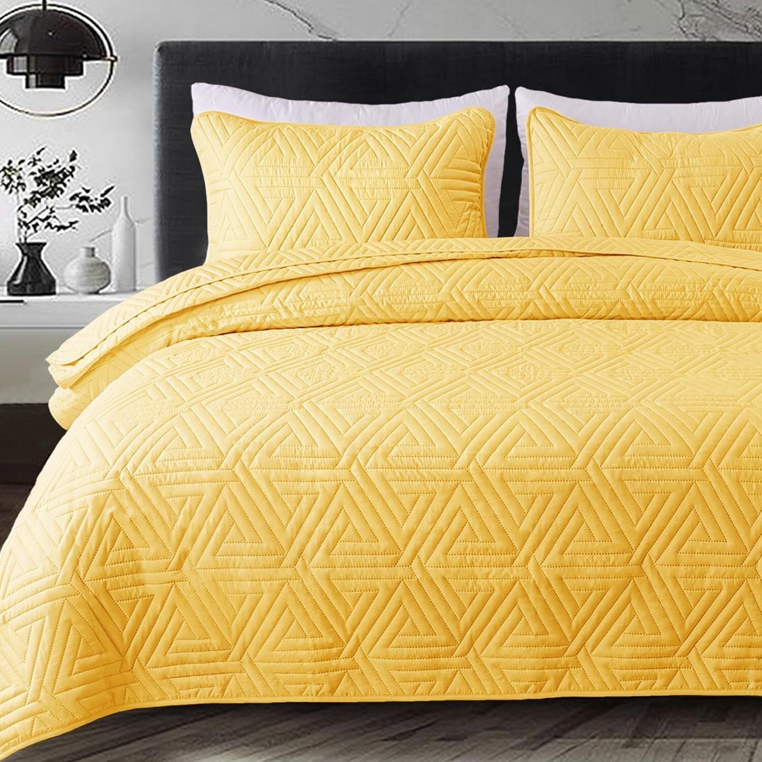 Whale Flotilla 3-Piece King Size Quilt Set/Bedspreads/Coverlets for All Season, Classic Geometric Pattern Bedding Set with 2 Pillow Shams, Soft and Lightweight, Yellow