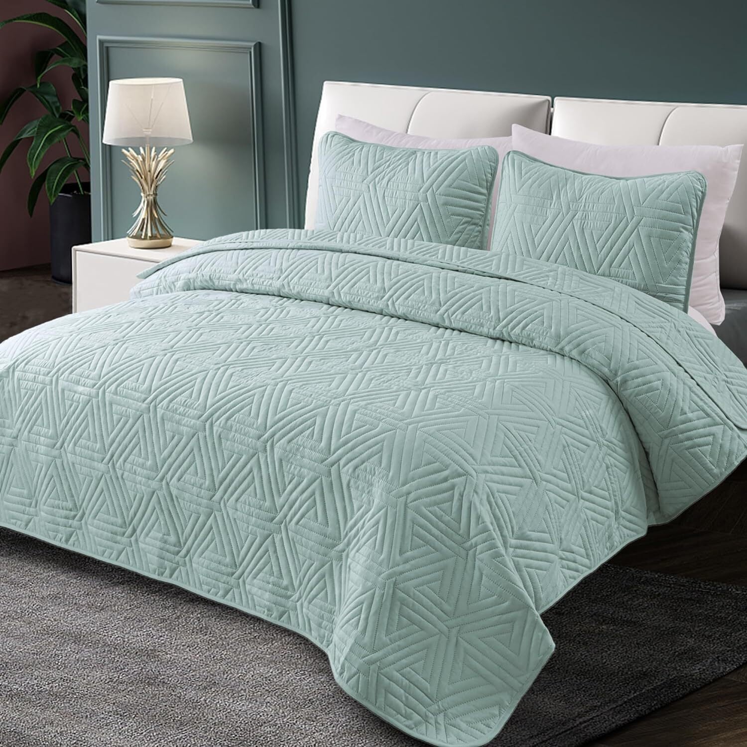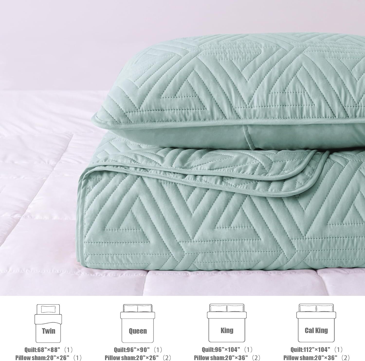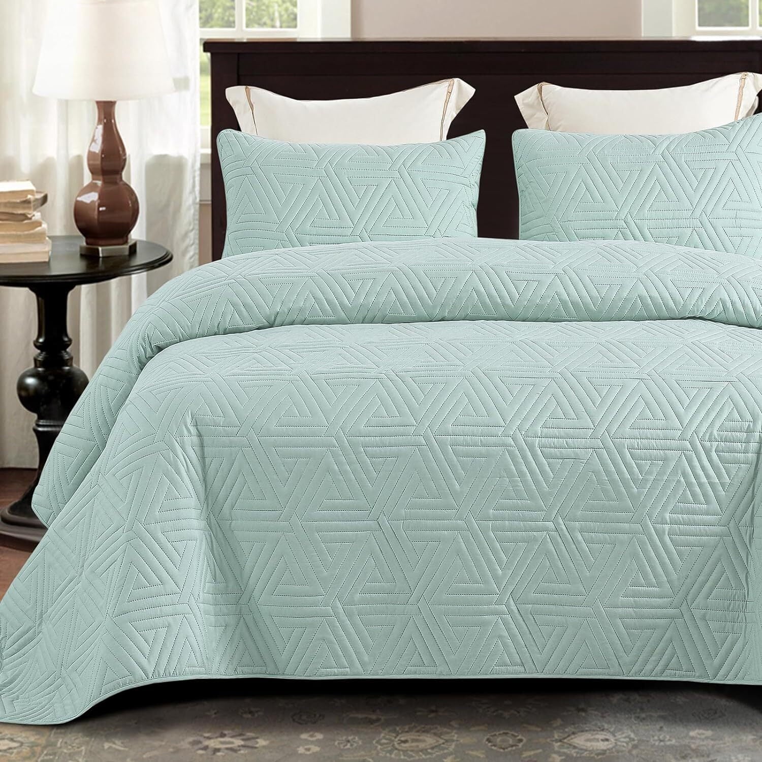 Whale Flotilla 3-Piece Queen Size Quilt Set/Bedspreads/Coverlets for All Season, Classic Geometric Pattern Bedding Set with 2 Pillow Shams, Soft and Lightweight, Blue