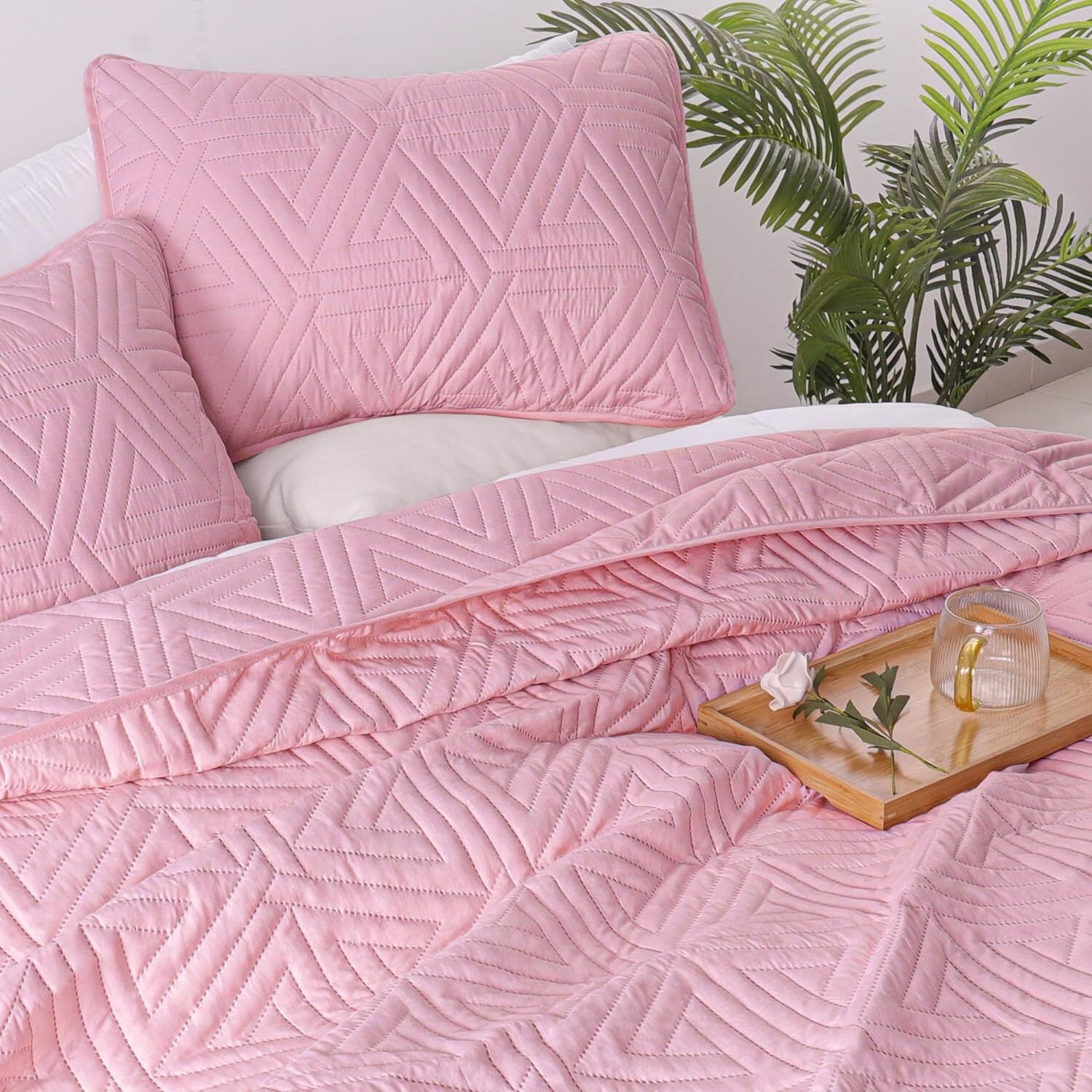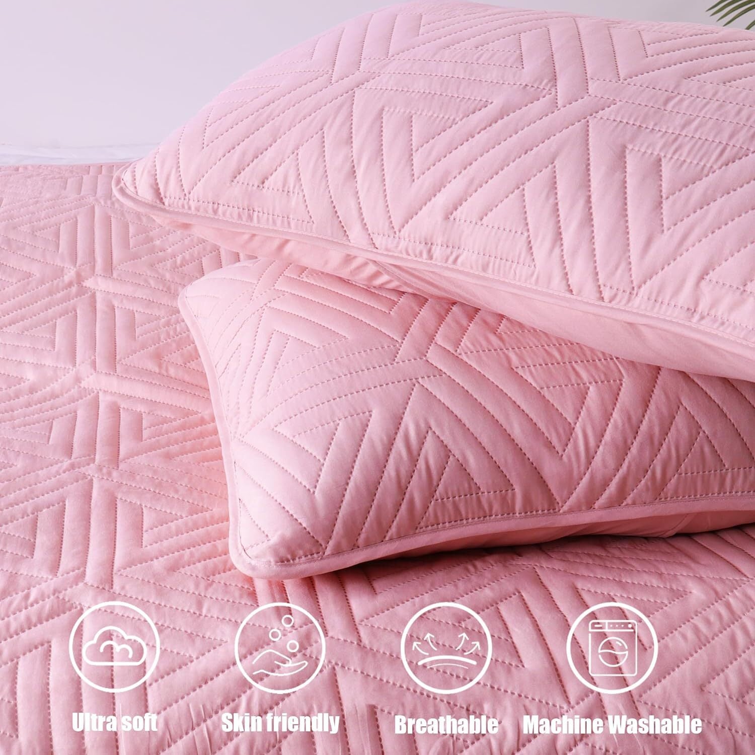 Whale Flotilla 3-Piece Queen Size Quilt Set/Bedspreads/Coverlets for All Season, Classic Geometric Pattern Bedding Set with 2 Pillow Shams, Soft and Lightweight, Pink