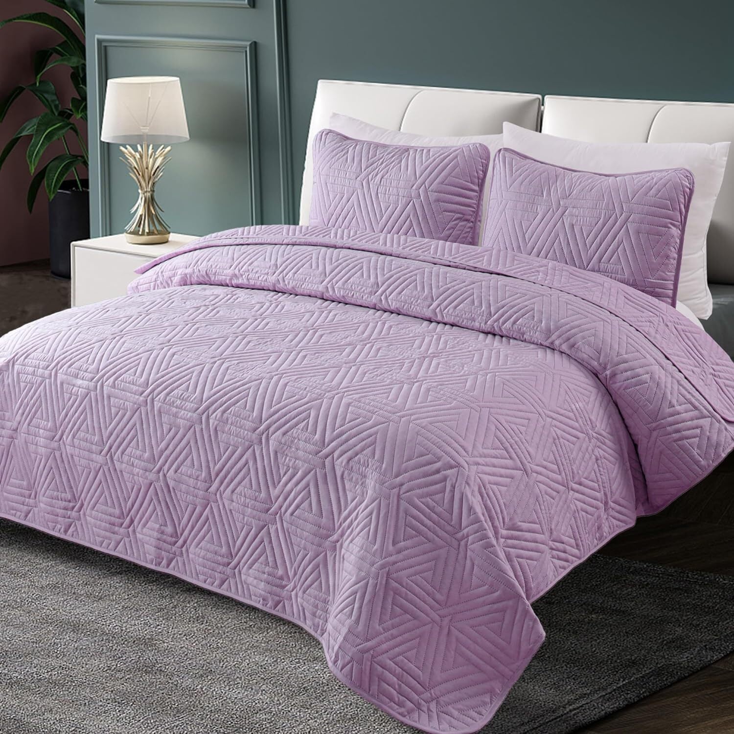 Whale Flotilla 2-Piece Twin Size Quilt Set/Bedspreads/Coverlets for All Season, Classic Geometric Pattern Bedding Set with Pillow Sham, Soft and Lightweight, Light Purple