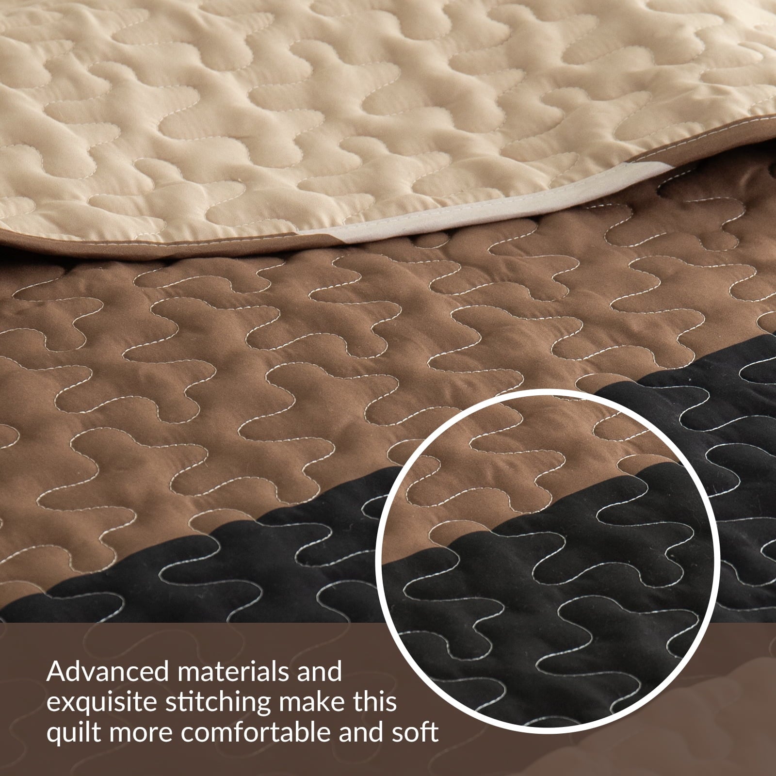 Whale Flotilla Reversible Ultra Soft Printed Quilts Twin Size, Lightweight Patchwork Geometric Stripes Bedspreads Coverlets Twin Quilt Bedding Set with 1 Pillow Sham for All Seasons, Camel