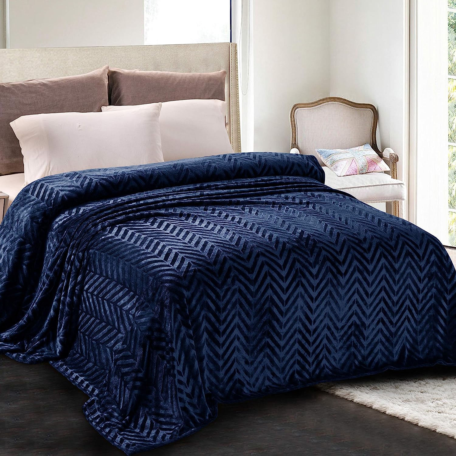 Whale Flotilla Flannel Fleece Twin Size Bed Blanket, Soft Velvet Lightweight Bedspread Plush Fluffy Coverlet Chevron Design Decorative Blanket for All Season